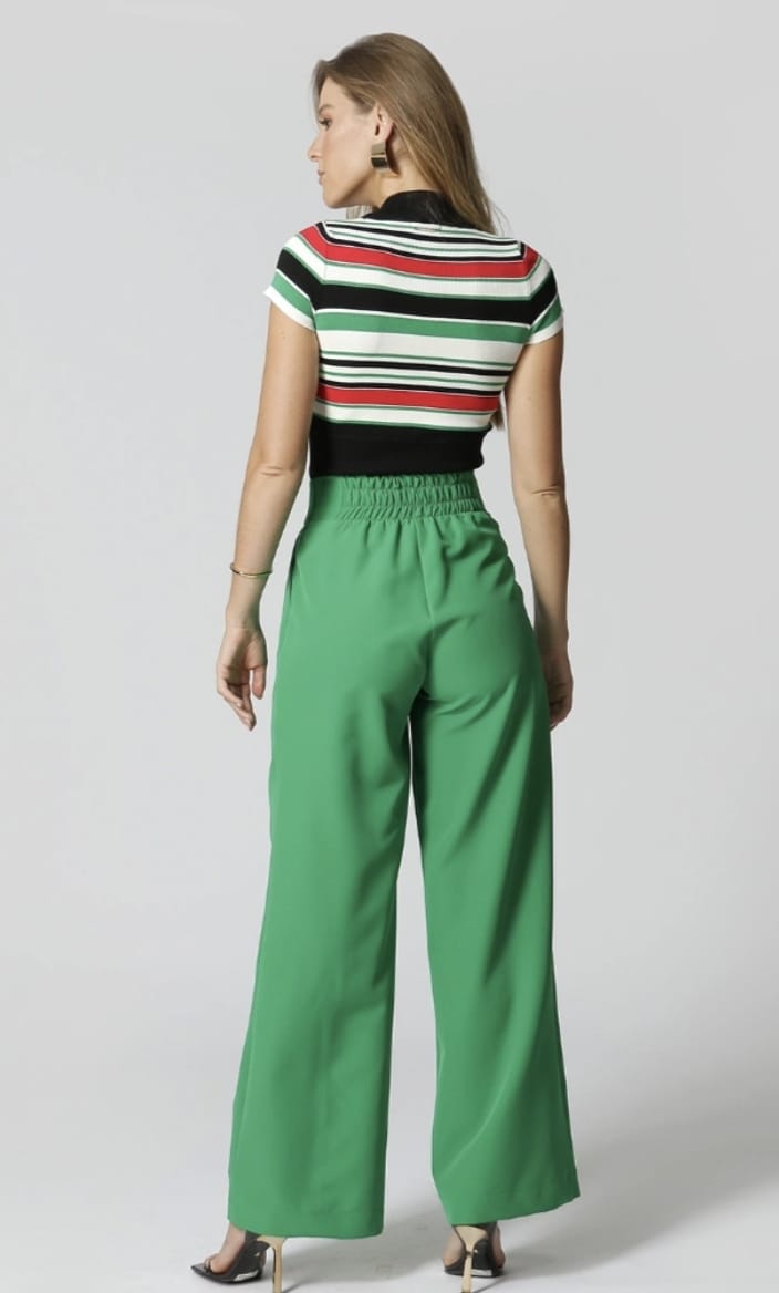 Uma peça moderna, elegante e incrivelmente confortável. A blusa cropped em tricot canelado com listras coloridas é perfeita para quem quer estar bem-vestida sem abrir mão do bem-estar.
