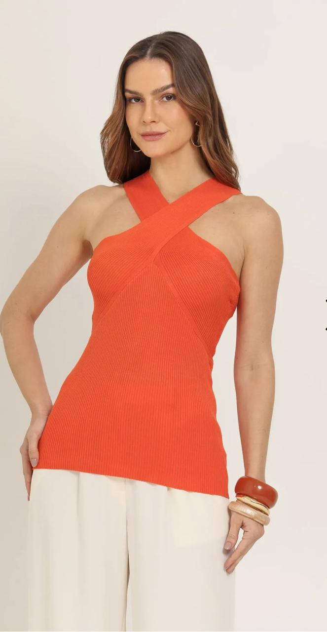 Vestido Tricot Midi Detalhe Ondas Laranja