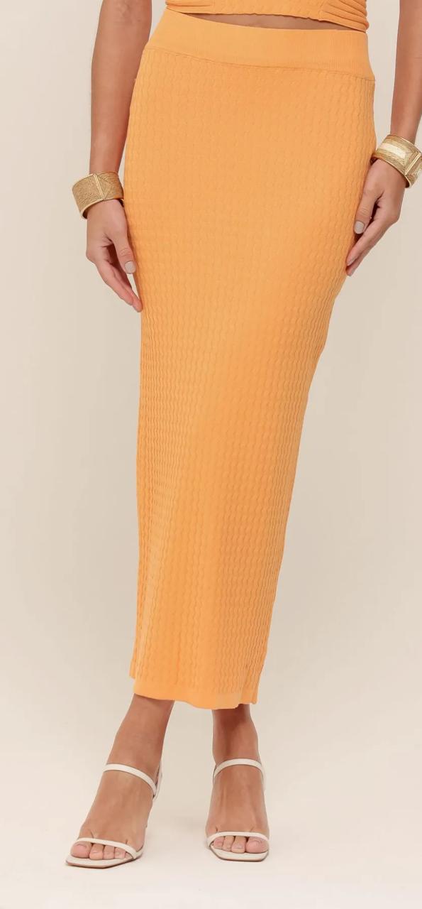 Saia Reta Midi Tricot Laranja