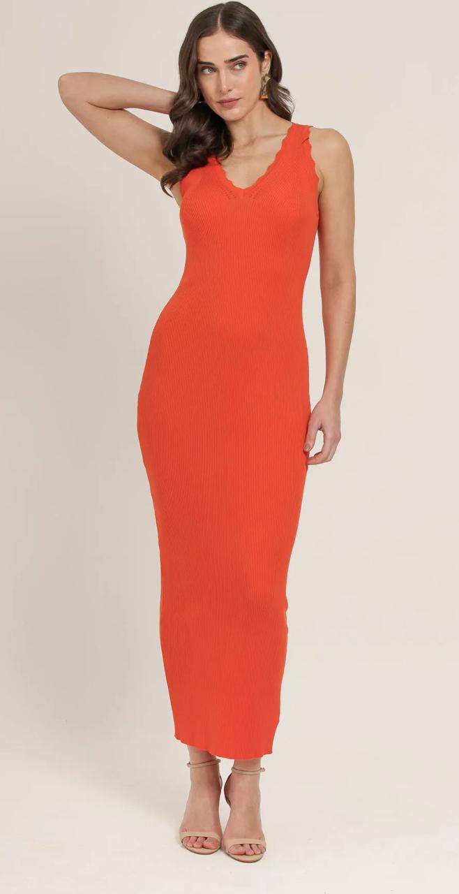 Vestido Tricot Midi Detalhe Ondas Laranja